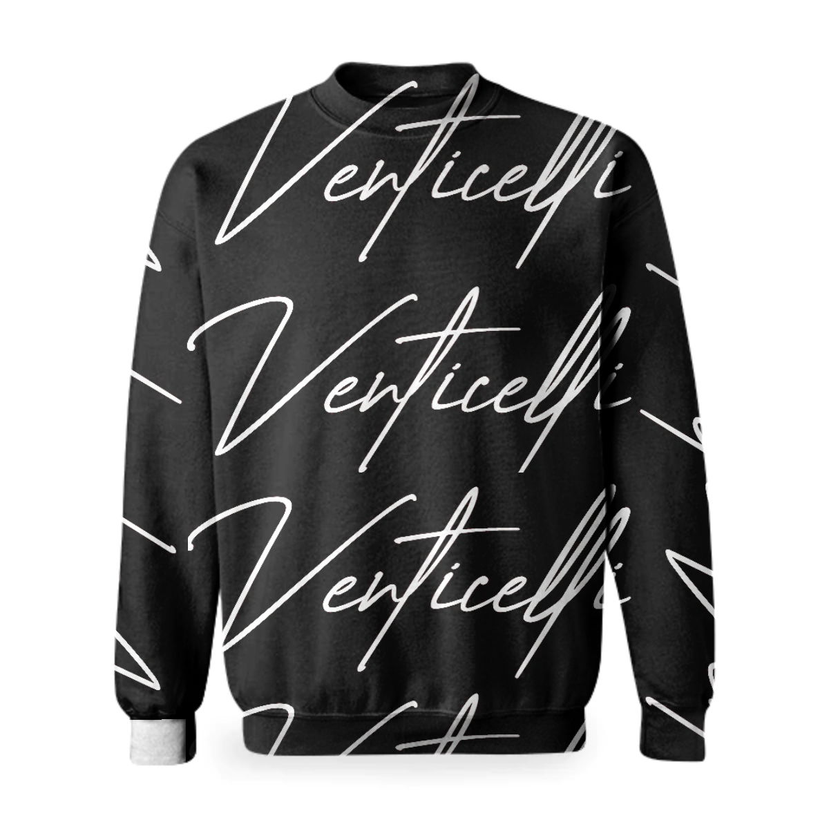 Basic crew neck sweatshirt with made with soft recycled polyester sweatshirt fabric. Features printed neck arm and bottom cuffs.