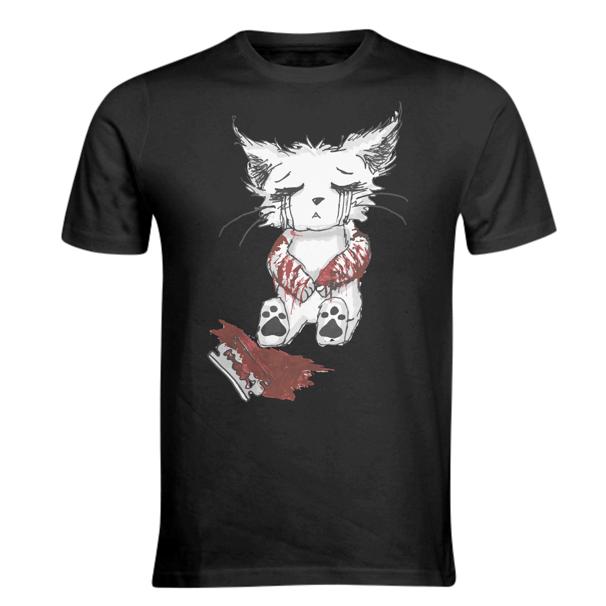 Gore bloody creepy horror kitty cat depression mental healt pain suffer sad shirt