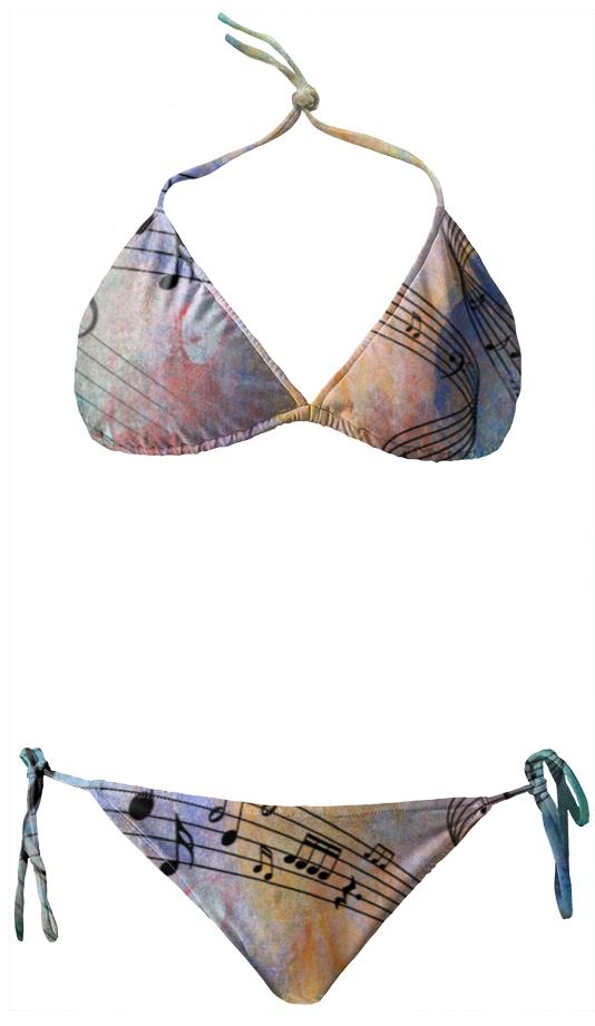String bikini with ties at the neck bust and hips. Throw it in a bag and head to the beach!
