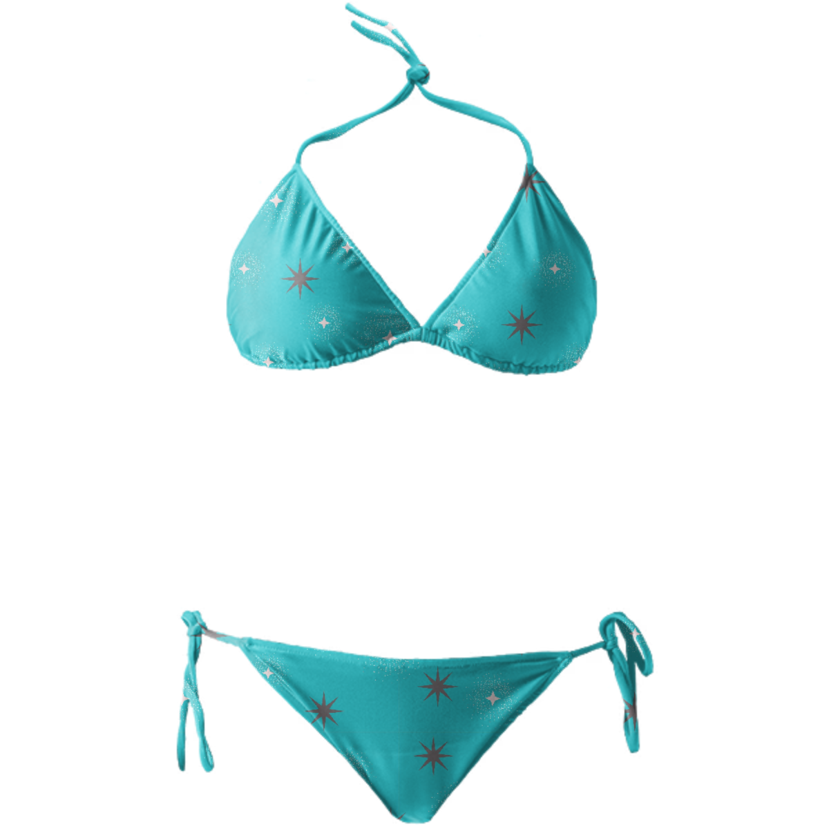 String bikini with ties at the neck bust and hips. Throw it in a bag and head to the beach!