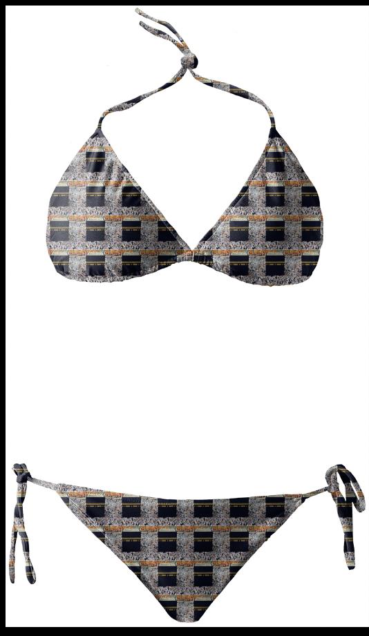 String bikini with ties at the neck bust and hips. Throw it in a bag and head to the beach!