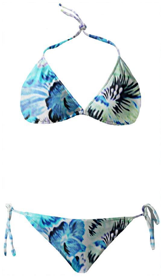String bikini with ties at the neck bust and hips. Throw it in a bag and head to the beach!