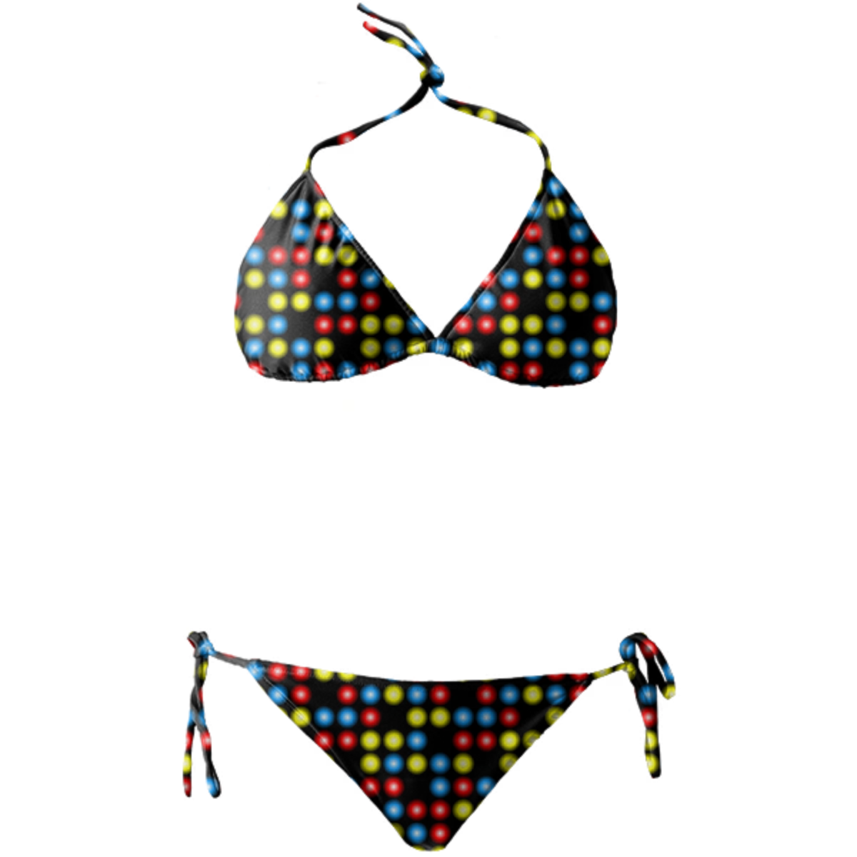 String bikini with ties at the neck bust and hips. Throw it in a bag and head to the beach!
