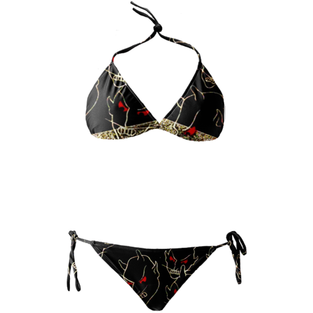 String bikini with ties at the neck bust and hips. Throw it in a bag and head to the beach!