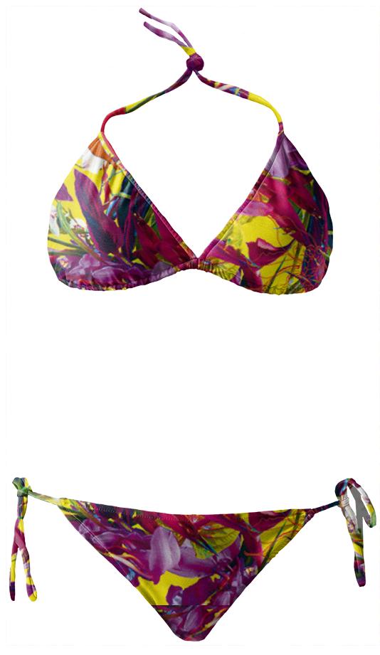 String bikini with ties at the neck bust and hips. Throw it in a bag and head to the beach!