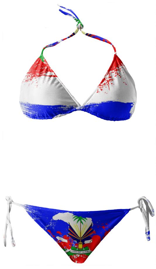 String bikini with ties at the neck bust and hips. Throw it in a bag and head to the beach!