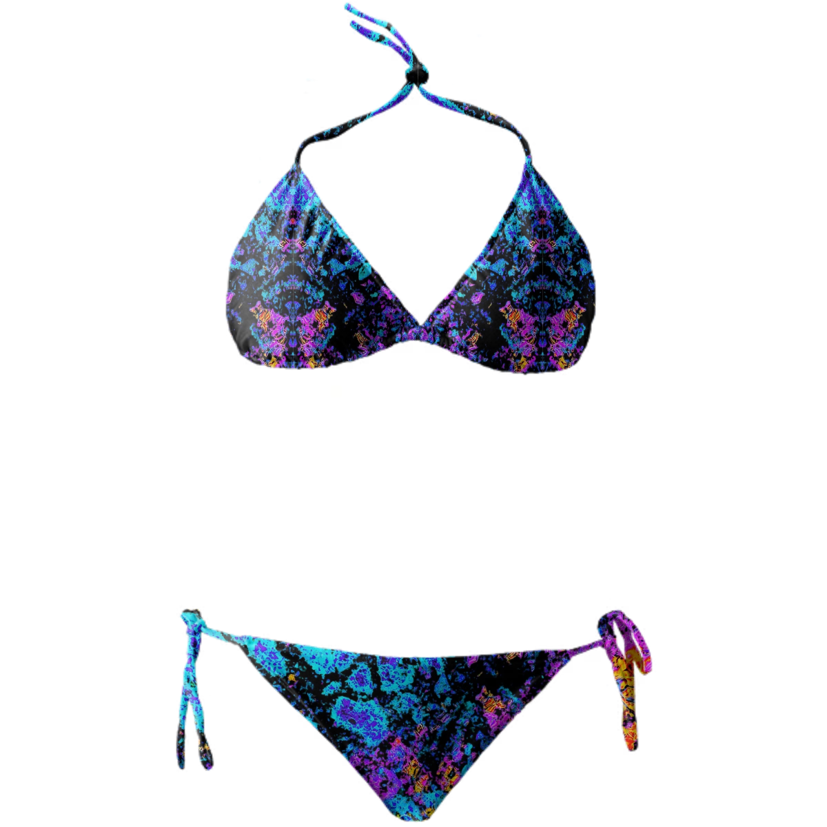String bikini with ties at the neck bust and hips. Throw it in a bag and head to the beach!
