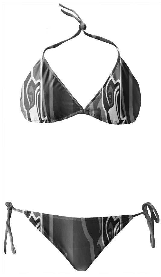 String bikini with ties at the neck bust and hips. Throw it in a bag and head to the beach!