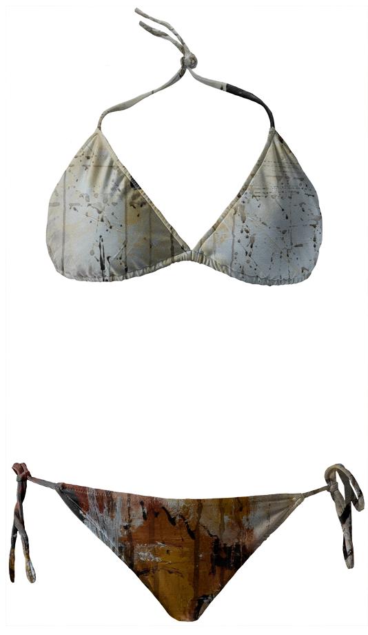 String bikini with ties at the neck bust and hips. Throw it in a bag and head to the beach!