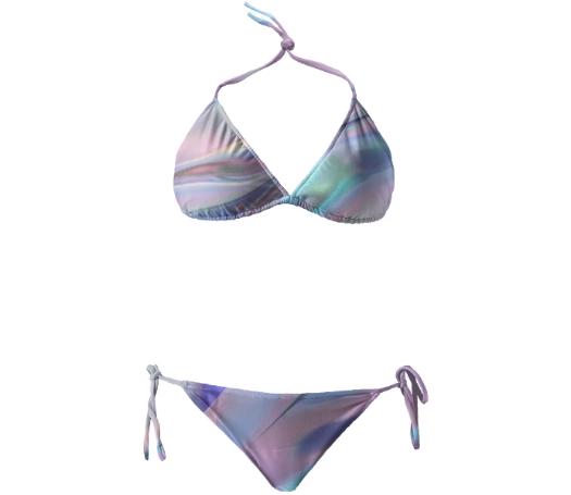 String bikini with ties at the neck bust and hips. Throw it in a bag and head to the beach!