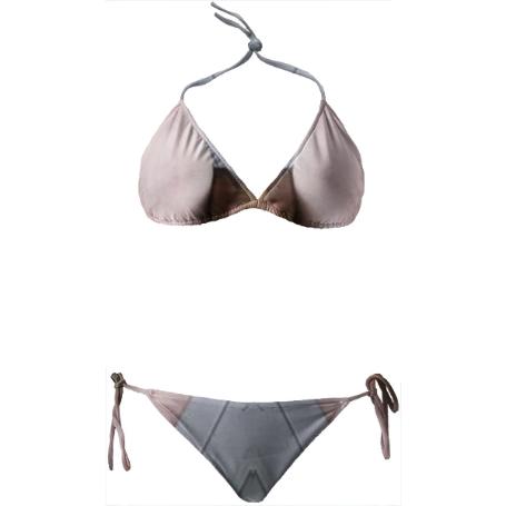 String bikini with ties at the neck bust and hips. Throw it in a bag and head to the beach!