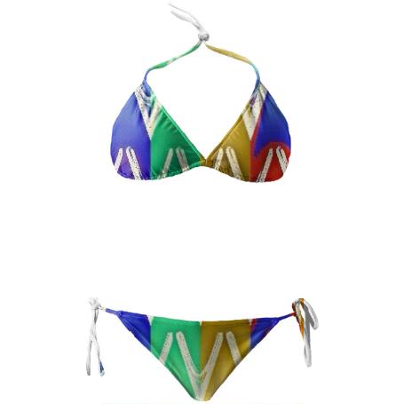 String bikini with ties at the neck bust and hips. Throw it in a bag and head to the beach!