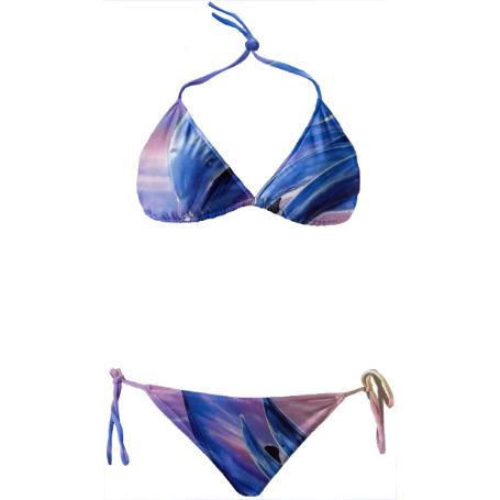 String bikini with ties at the neck bust and hips. Throw it in a bag and head to the beach!