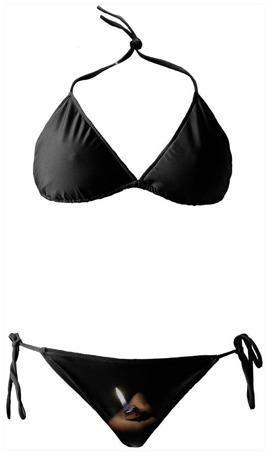 String bikini with ties at the neck bust and hips. Throw it in a bag and head to the beach!