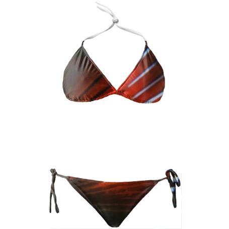 String bikini with ties at the neck bust and hips. Throw it in a bag and head to the beach!