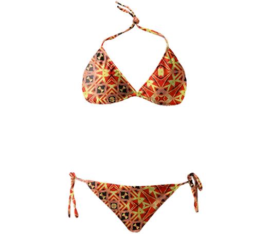 String bikini with ties at the neck bust and hips. Throw it in a bag and head to the beach!