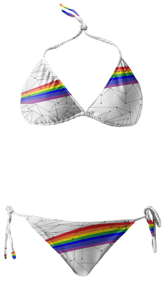 String bikini with ties at the neck bust and hips. Throw it in a bag and head to the beach!