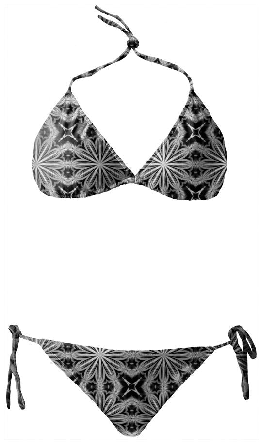 String bikini with ties at the neck bust and hips. Throw it in a bag and head to the beach!