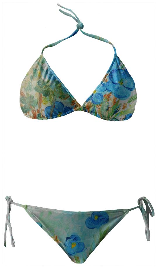 String bikini with ties at the neck bust and hips. Throw it in a bag and head to the beach!