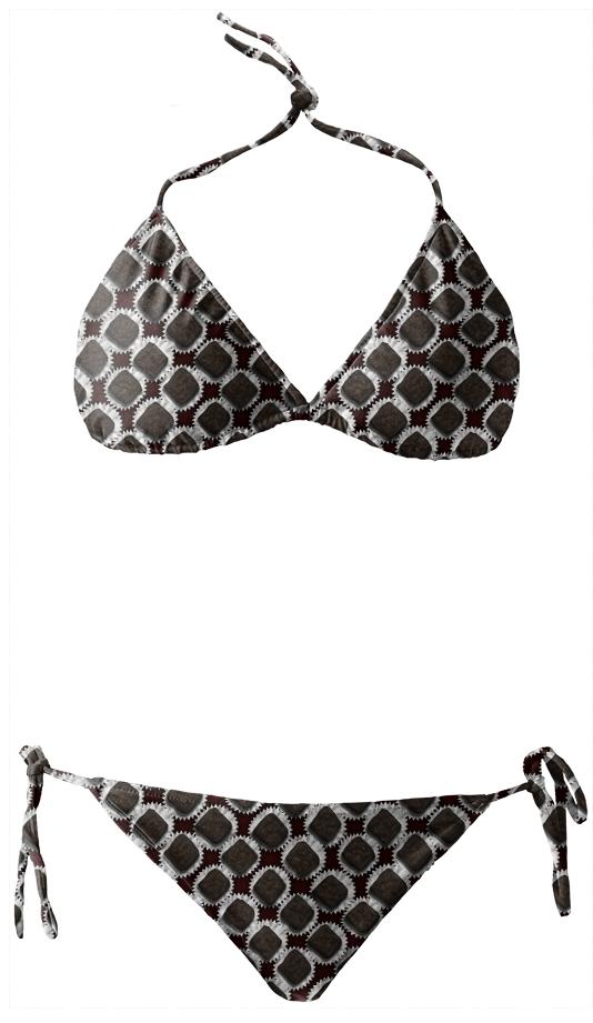 String bikini with ties at the neck bust and hips. Throw it in a bag and head to the beach!