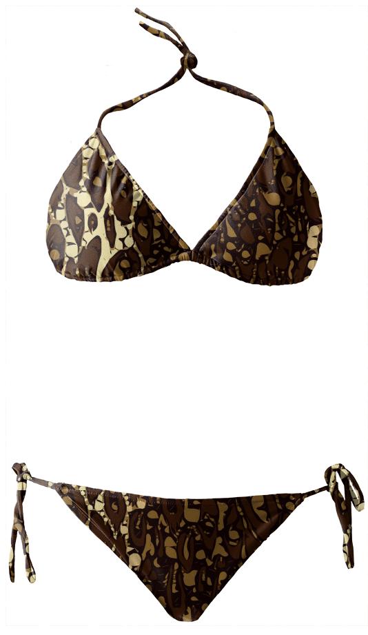String bikini with ties at the neck bust and hips. Throw it in a bag and head to the beach!