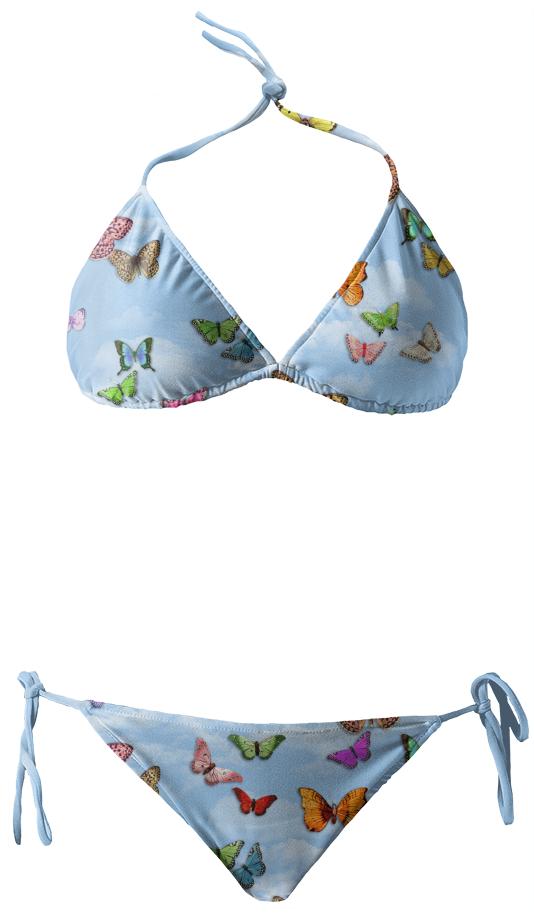 String bikini with ties at the neck bust and hips. Throw it in a bag and head to the beach!