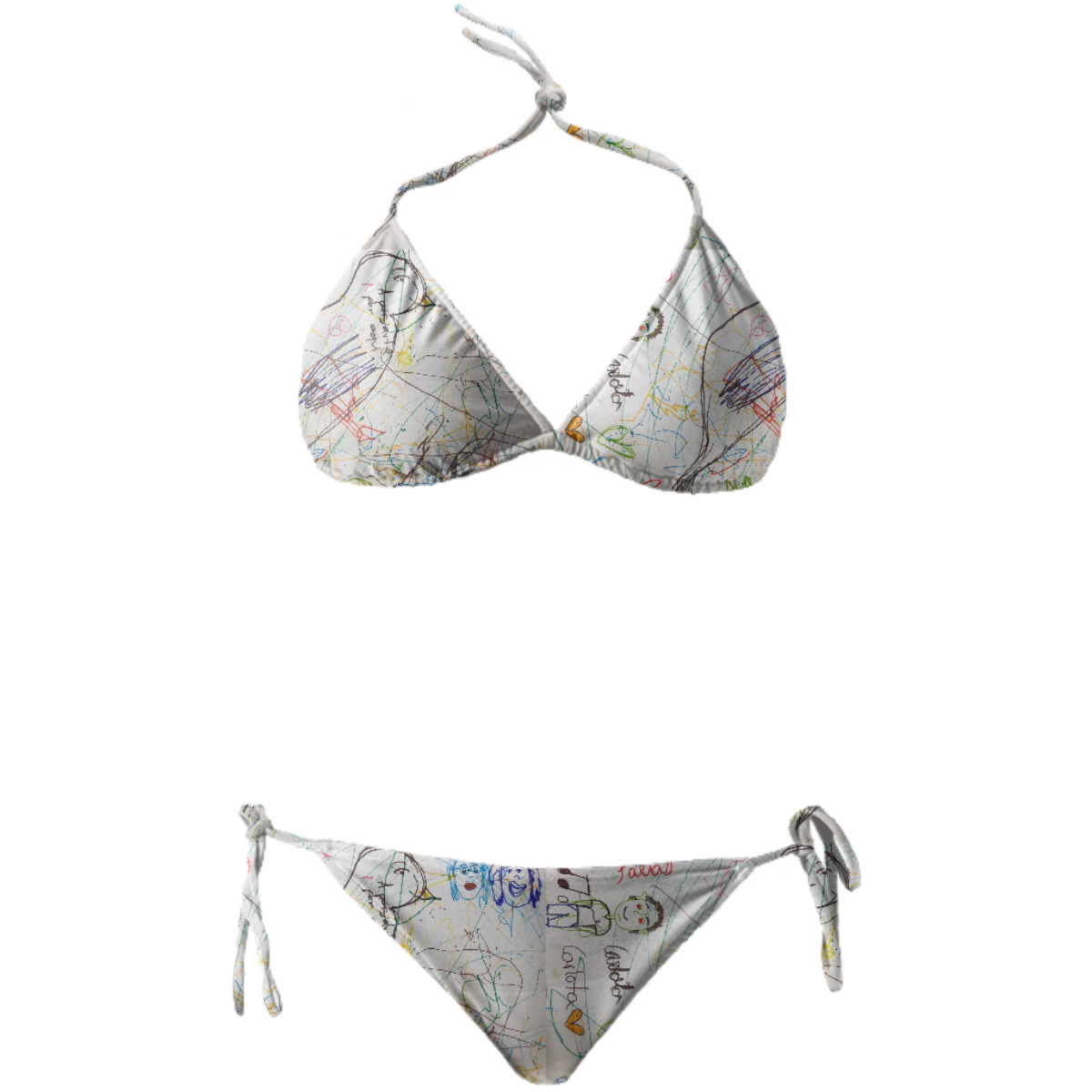 String bikini with ties at the neck bust and hips. Throw it in a bag and head to the beach!