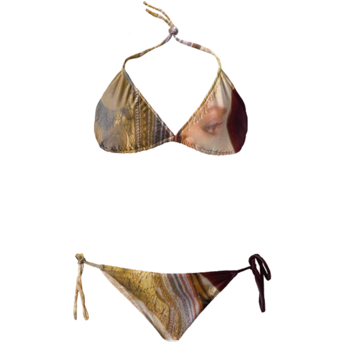 String bikini with ties at the neck bust and hips. Throw it in a bag and head to the beach!