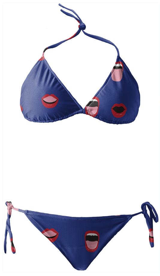 String bikini with ties at the neck bust and hips. Throw it in a bag and head to the beach!