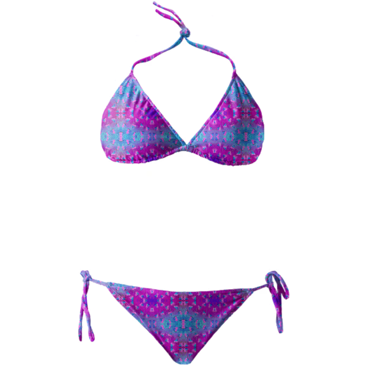 String bikini with ties at the neck bust and hips. Throw it in a bag and head to the beach!