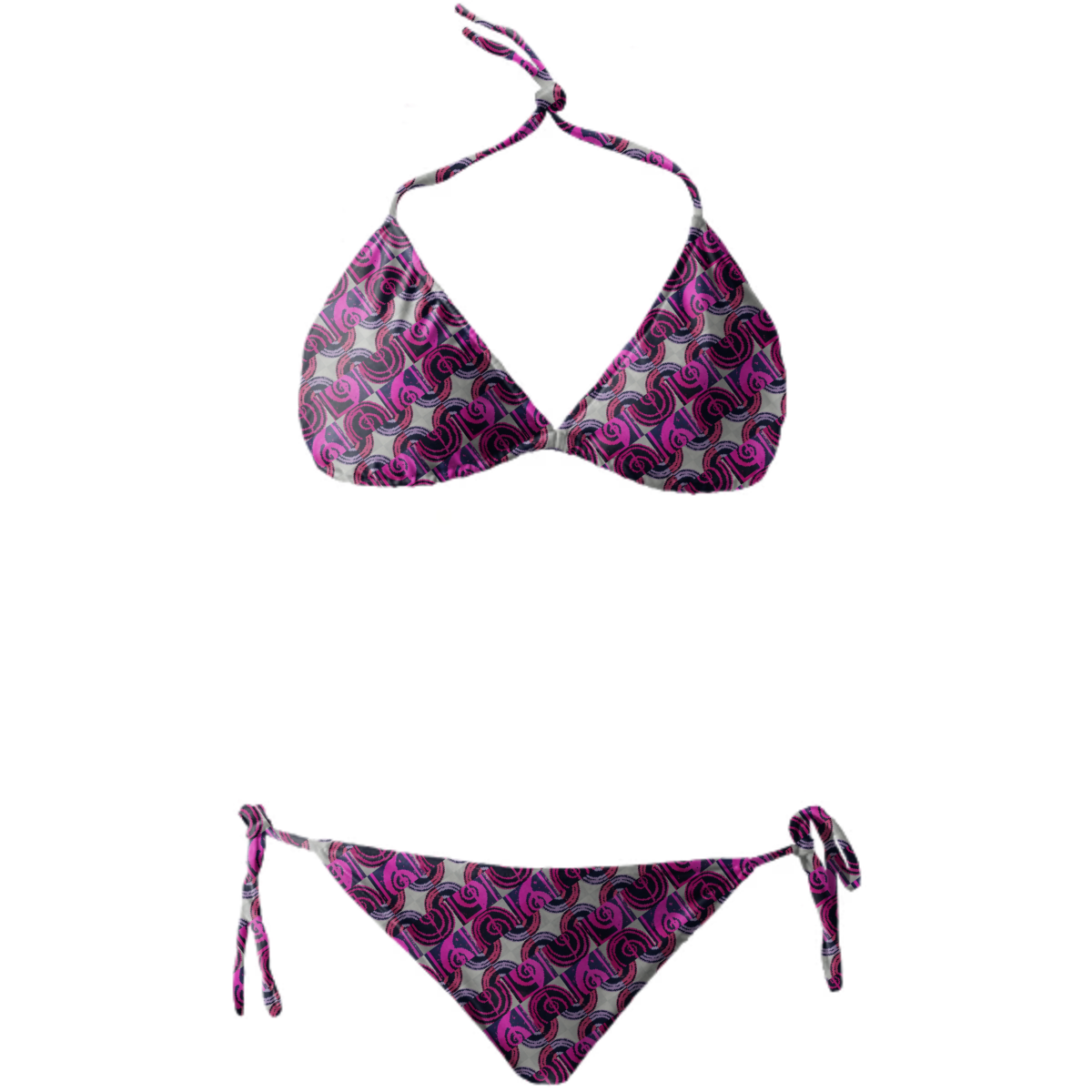 String bikini with ties at the neck bust and hips. Throw it in a bag and head to the beach!