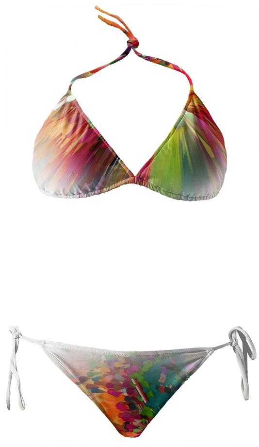 String bikini with ties at the neck bust and hips. Throw it in a bag and head to the beach!