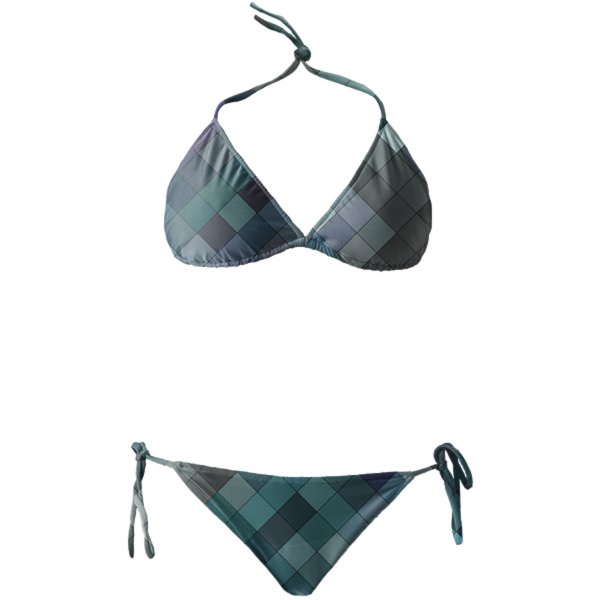 String bikini with ties at the neck bust and hips. Throw it in a bag and head to the beach!