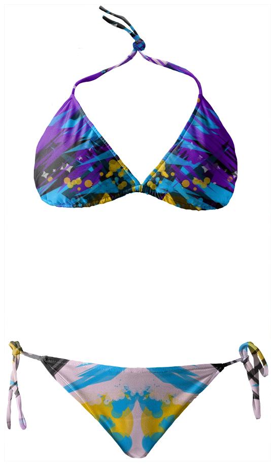String bikini with ties at the neck bust and hips. Throw it in a bag and head to the beach!
