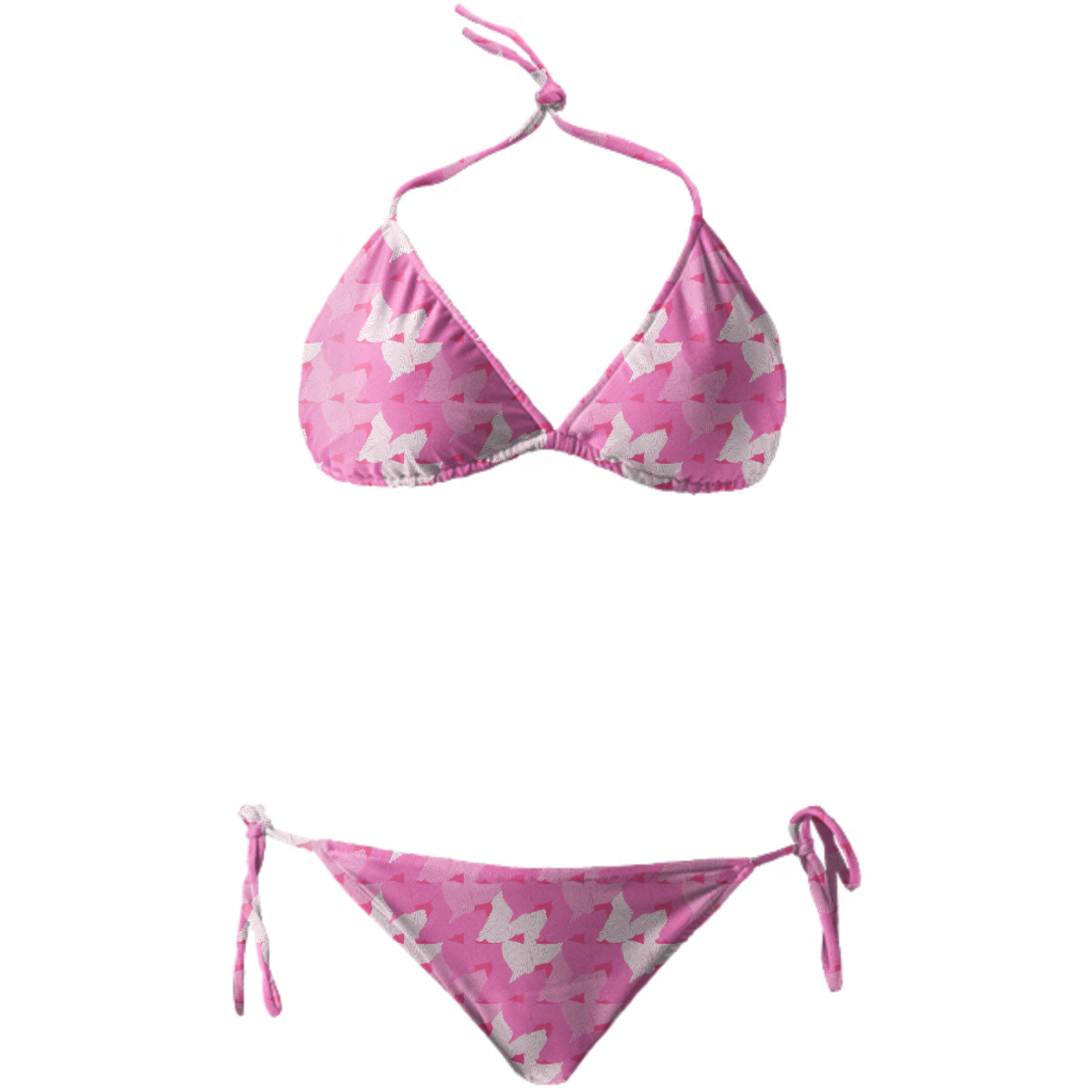 String bikini with ties at the neck bust and hips. Throw it in a bag and head to the beach!