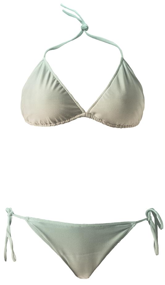 String bikini with ties at the neck bust and hips. Throw it in a bag and head to the beach!