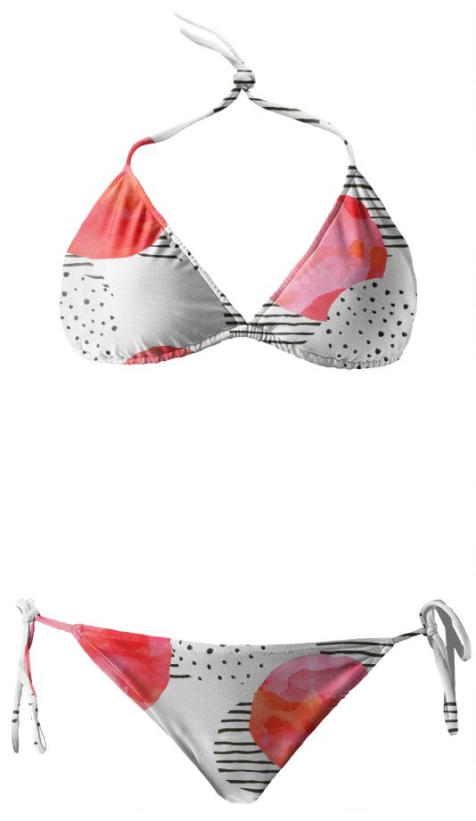 String bikini with ties at the neck bust and hips. Throw it in a bag and head to the beach!