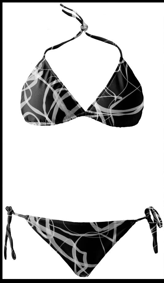 String bikini with ties at the neck bust and hips. Throw it in a bag and head to the beach!