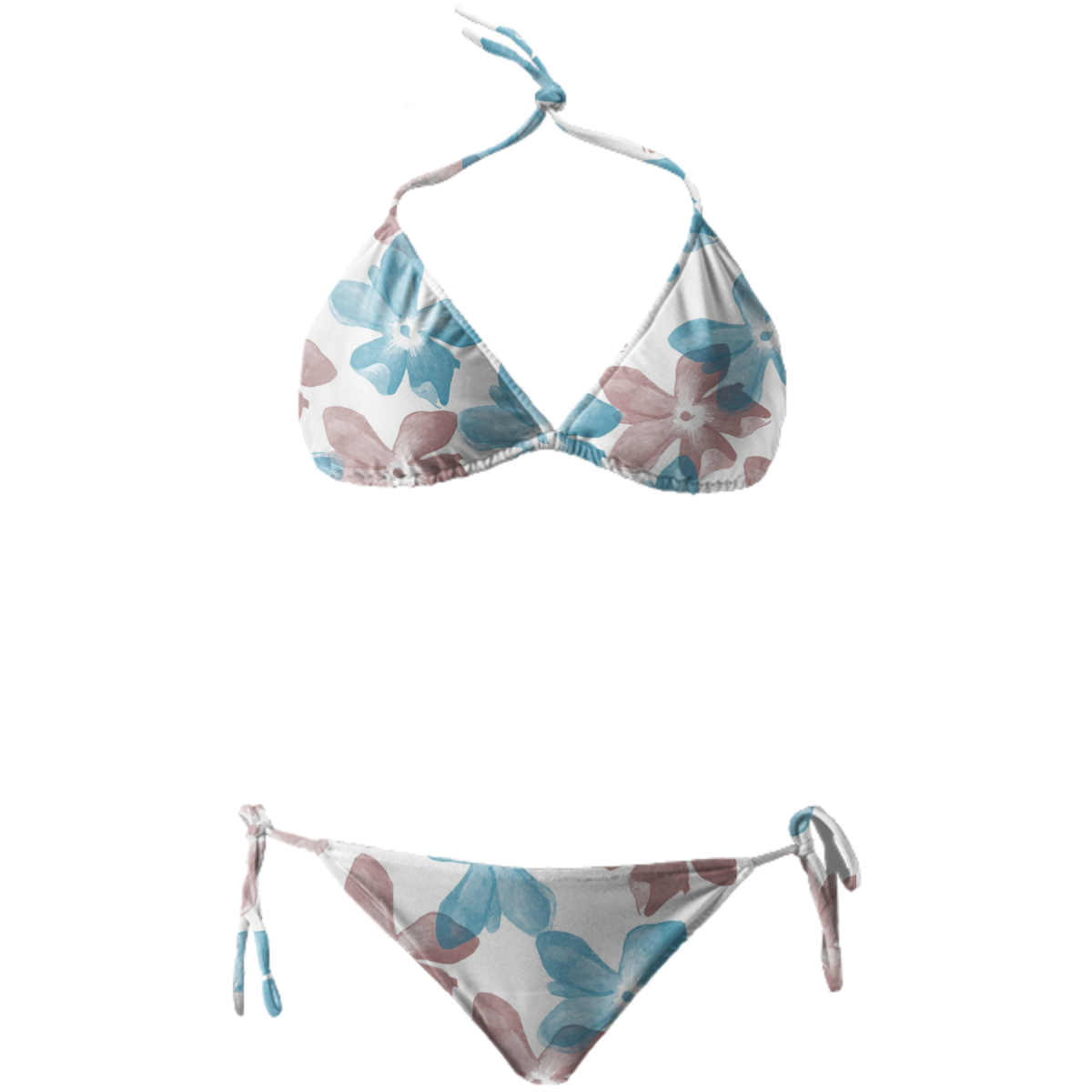 String bikini with ties at the neck bust and hips. Throw it in a bag and head to the beach!