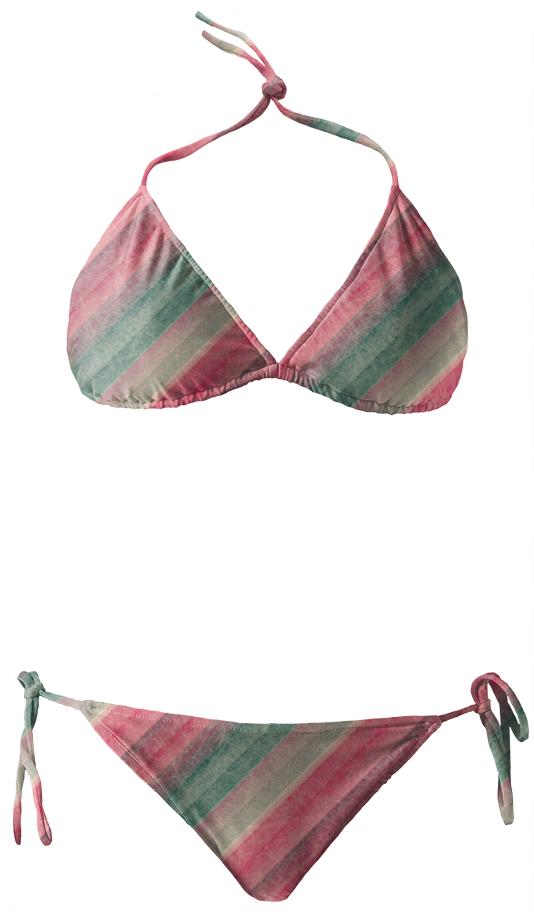 String bikini with ties at the neck bust and hips. Throw it in a bag and head to the beach!