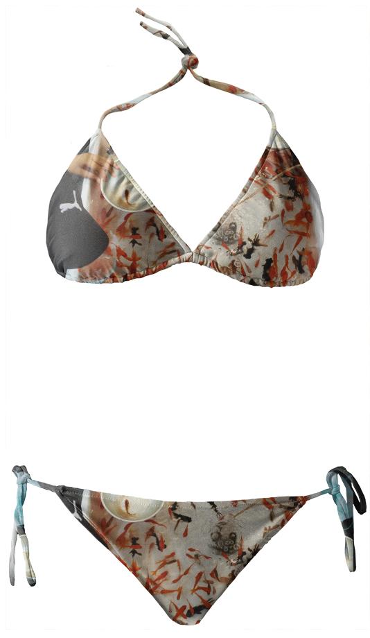 String bikini with ties at the neck bust and hips. Throw it in a bag and head to the beach!