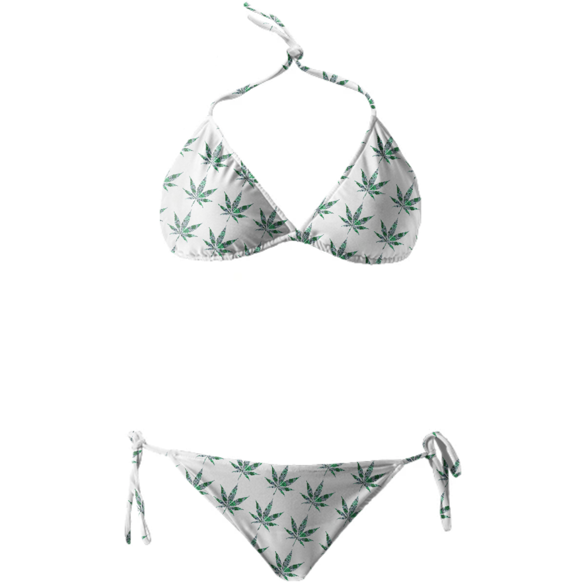 String bikini with ties at the neck bust and hips. Throw it in a bag and head to the beach!