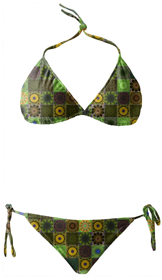 String bikini with ties at the neck bust and hips. Throw it in a bag and head to the beach!
