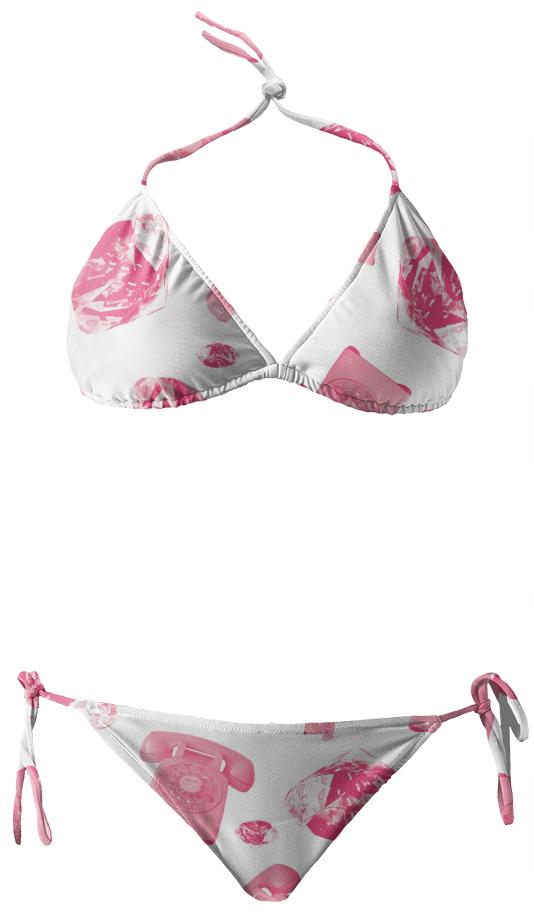 String bikini with ties at the neck bust and hips. Throw it in a bag and head to the beach!