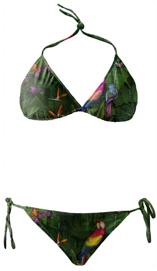 String bikini with ties at the neck bust and hips. Throw it in a bag and head to the beach!