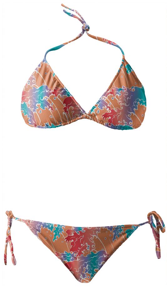String bikini with ties at the neck bust and hips. Throw it in a bag and head to the beach!