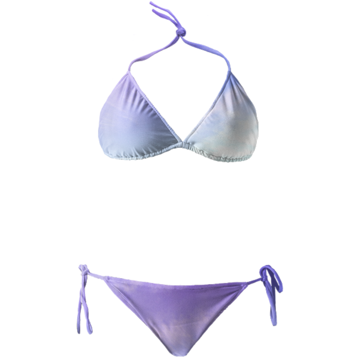 String bikini with ties at the neck bust and hips. Throw it in a bag and head to the beach!