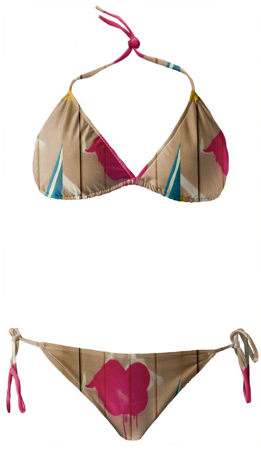 String bikini with ties at the neck bust and hips. Throw it in a bag and head to the beach!