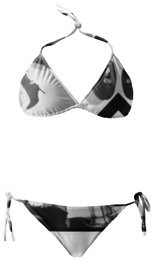 String bikini with ties at the neck bust and hips. Throw it in a bag and head to the beach!