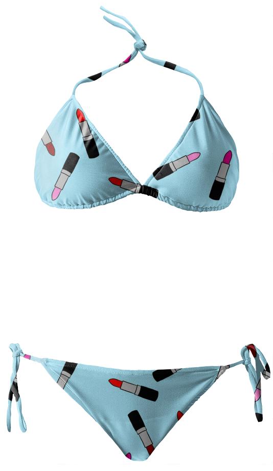 String bikini with ties at the neck bust and hips. Throw it in a bag and head to the beach!